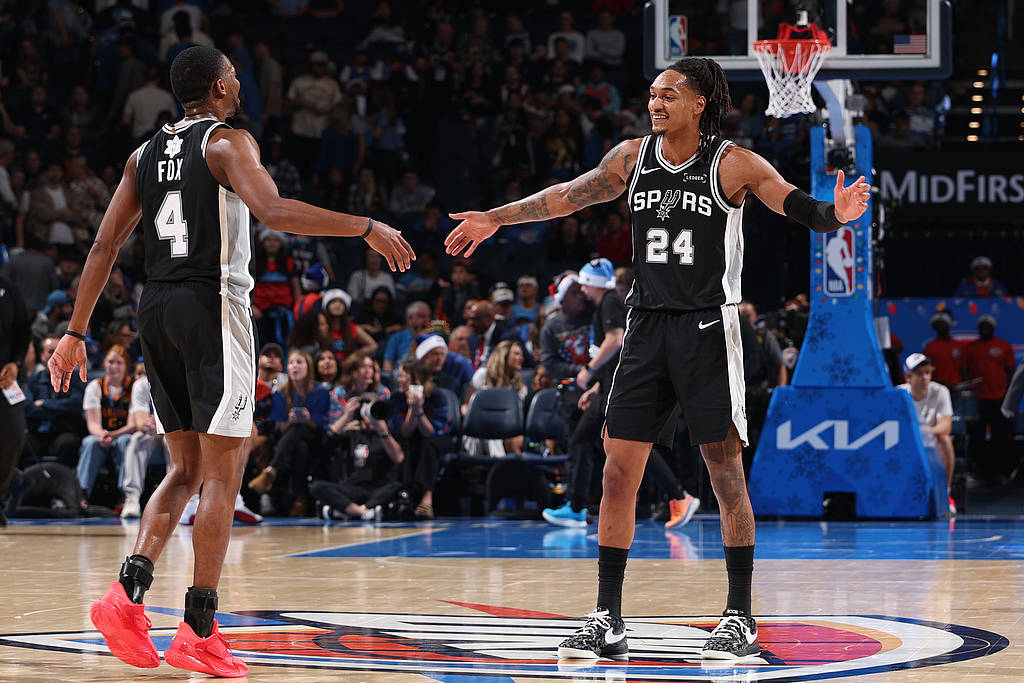 马刺半个月三杀卫冕冠军雷霆 取得联盟最长8连胜 admin 2025年12月26日 09:30 130 0 搜狐体育消息,北京时间12月26日,NBA圣诞大战,马刺击败雷霆,取得八连胜。马刺战绩来到23胜7负,继续稳居西部第二,联盟第三,距离雷霆迫近到2.5胜场差。本场比赛的胜利,是半个月来,马刺第三次击败雷霆。 标签: #1 #胜利 #大战 #比赛 #NBA #雷霆 #马刺 #三杀 #消息资讯 #圣诞大战 #搜狐 #联盟